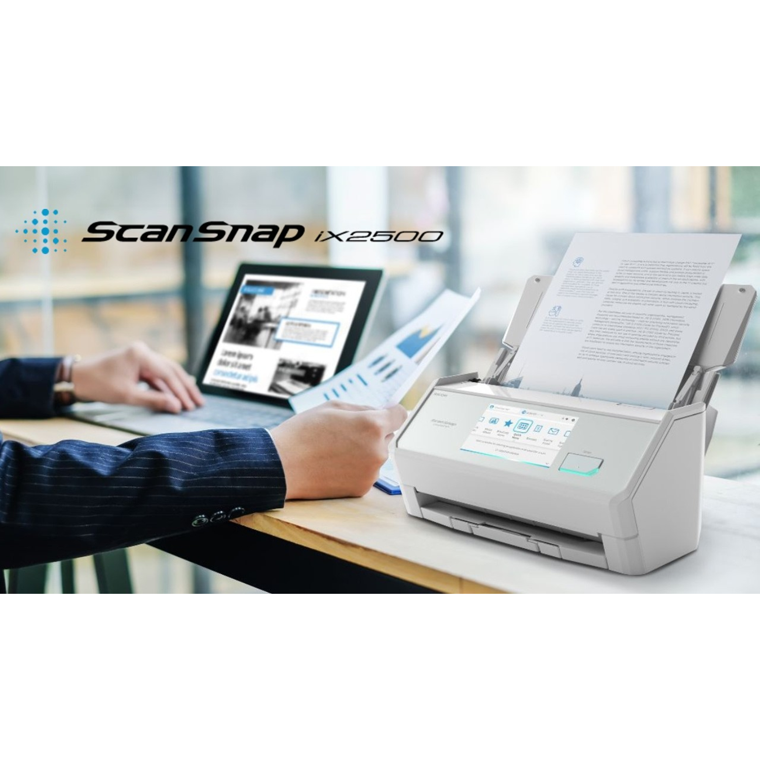 ScanSnap iX2500, ScanSnap serisinin gelişmiş amiral gemisi modelidir ve dakikada 45 sayfa/90 görüntü (A4 boyutunda belgeler, renkli, 300 dpi) gibi daha yüksek hızlarda tarama imkanı sunar. Fiziksel ve dijital dünyanın buluştuğu noktayı birleştiren büyük 5 inçlik dokunmatik ekranıyla dikkat çekiyor. Cihaz, evde, ofiste veya kiralık bir ortak çalışma alanında olmanız fark etmeksizin, kişiselleştirilmiş ayarlarınızı her yerde kullanmanıza olanak tanır. Taranan verileri kullanmak için dijital hizmetlerle sorunsuz bir şekilde entegre olur ve kullanıcı dostu, stressiz bir deneyim sunar.