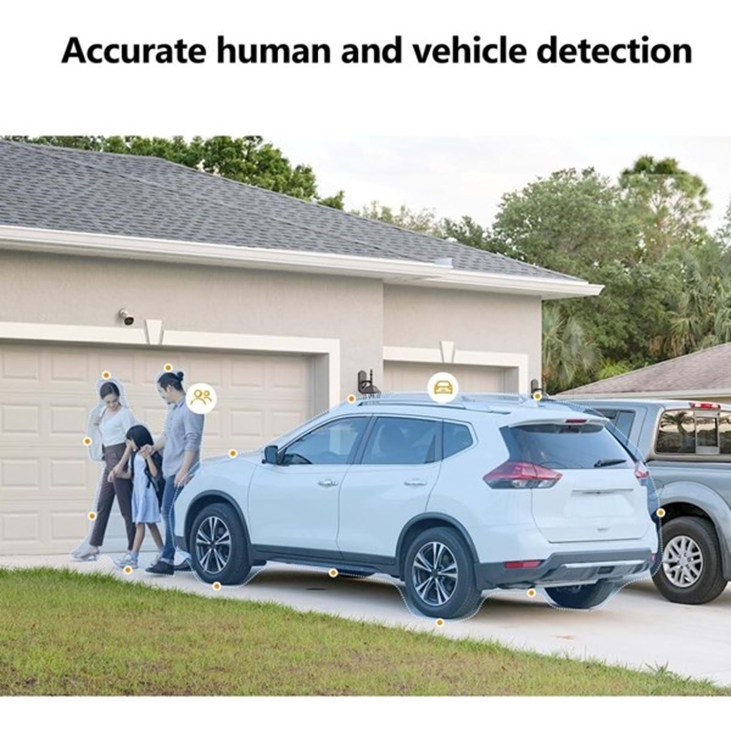 lMOU SENSE™ tarafından desteklenen yeni yükseltilmiş Al insan ve araç tespiti, sivrisineklerin ve ağaçların sallanmasının neden olduğu yanlış alarmları etkili bir şekilde azaltabilir. Etkili algılama aralığı, kişiler için 22 metreye ve arabalar için 44 metre¹'e ulaşabilir ve bu da algılamanın gerçekten "doğru" olmasını sağlar